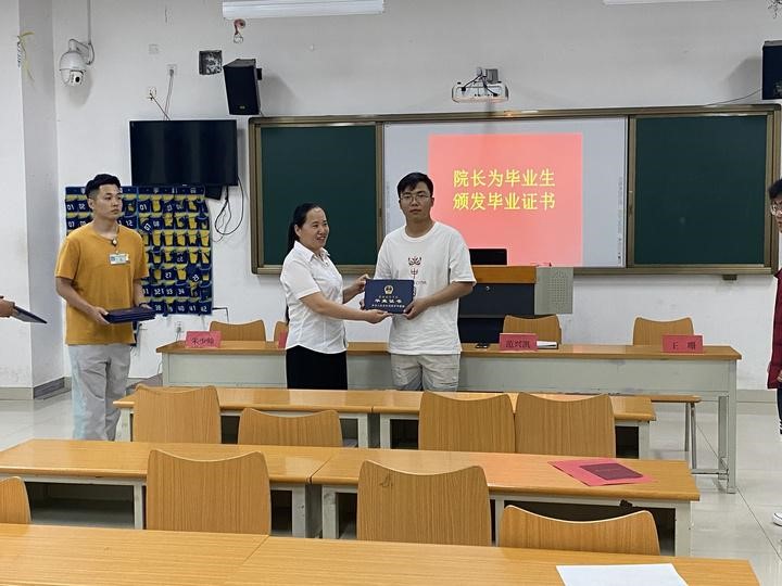 经理为毕业生颁发毕业证书。翘首期盼中,最神圣最庄重的时刻终于到来。太阳成集团122ccvip经理彭爱玲为2021届毕业生逐一颁发毕业证书。